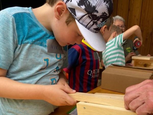Die Hege des Wildes nimmt einen großen Anteil der Revierarbeit ein. Das Anlegen von Blühstreifen, die Kitzrettung im Frühsommer, Suhlen für Rot- und Schwarzwild im trockenen Hochsommer, Futterstellen für Fasan und Rebhuhn sind nur einige Beispiele dieser Arbeit. Auch Nistkastenbau ist ein Teil der Hegemaßnahmen und die Ferienkinder haben das durch ihre Arbeit unterstützt. Die selbst zusammengebauten Nistkästen werden mit nach Hause genommen und im eigenen Garten aufgehängt. Werden sie jetzt und im kommenden Herbst aufgehängt, können sie bis zum Frühjahr „verwittern“ und werden dann leichter angenommen. Nisthilfe und Schutzräume für Meisen, ein wichtiger Beitrag zum Schutz der Artenvielfalt